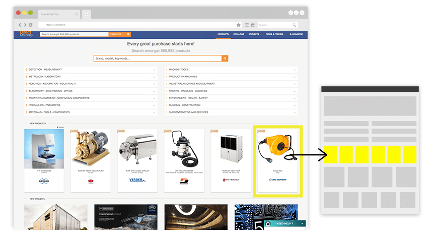 主打产品附带了产品定义、品牌标志和“NEW”标签。 可以链接到您的展台。