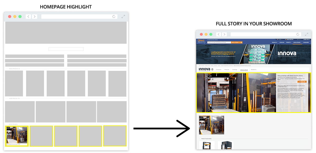 您可以在首页上推送您的新闻。 推送中,包括您的公司商标和故事标题,并附带追踪浏览量和点击量自动报告。