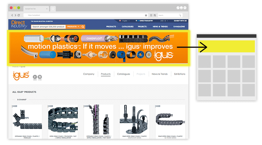 Marketplace横幅广告是位于页面顶部的“排行榜”横幅(1920 x 330像素),可链接到您的展台。